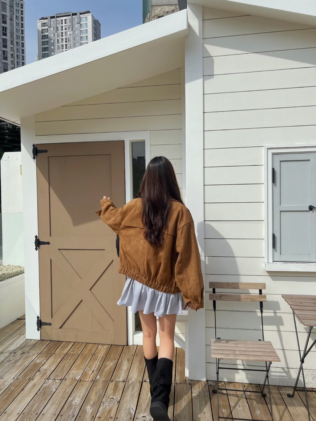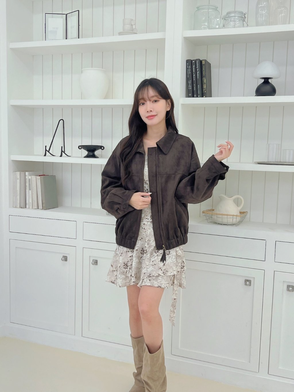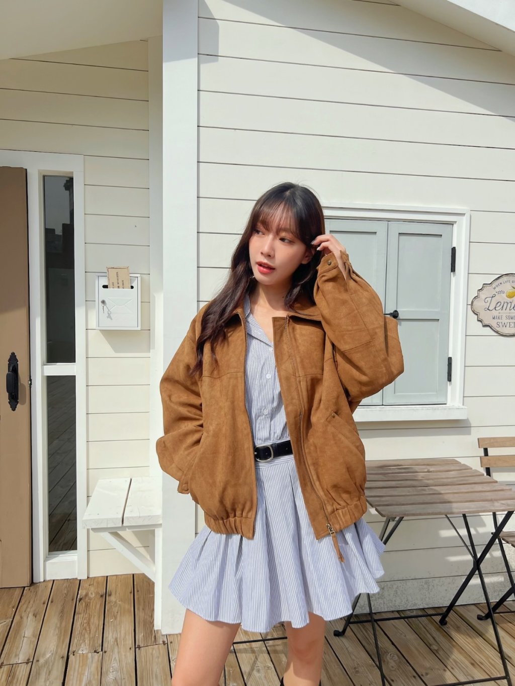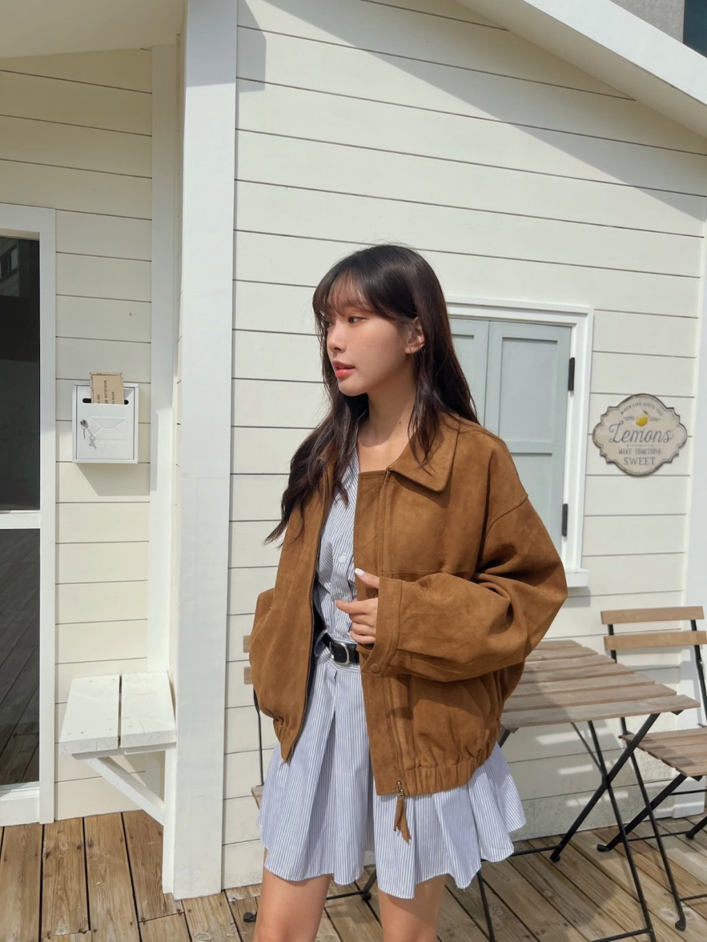 個性翻領拉鍊鬆緊下擺麂皮外套