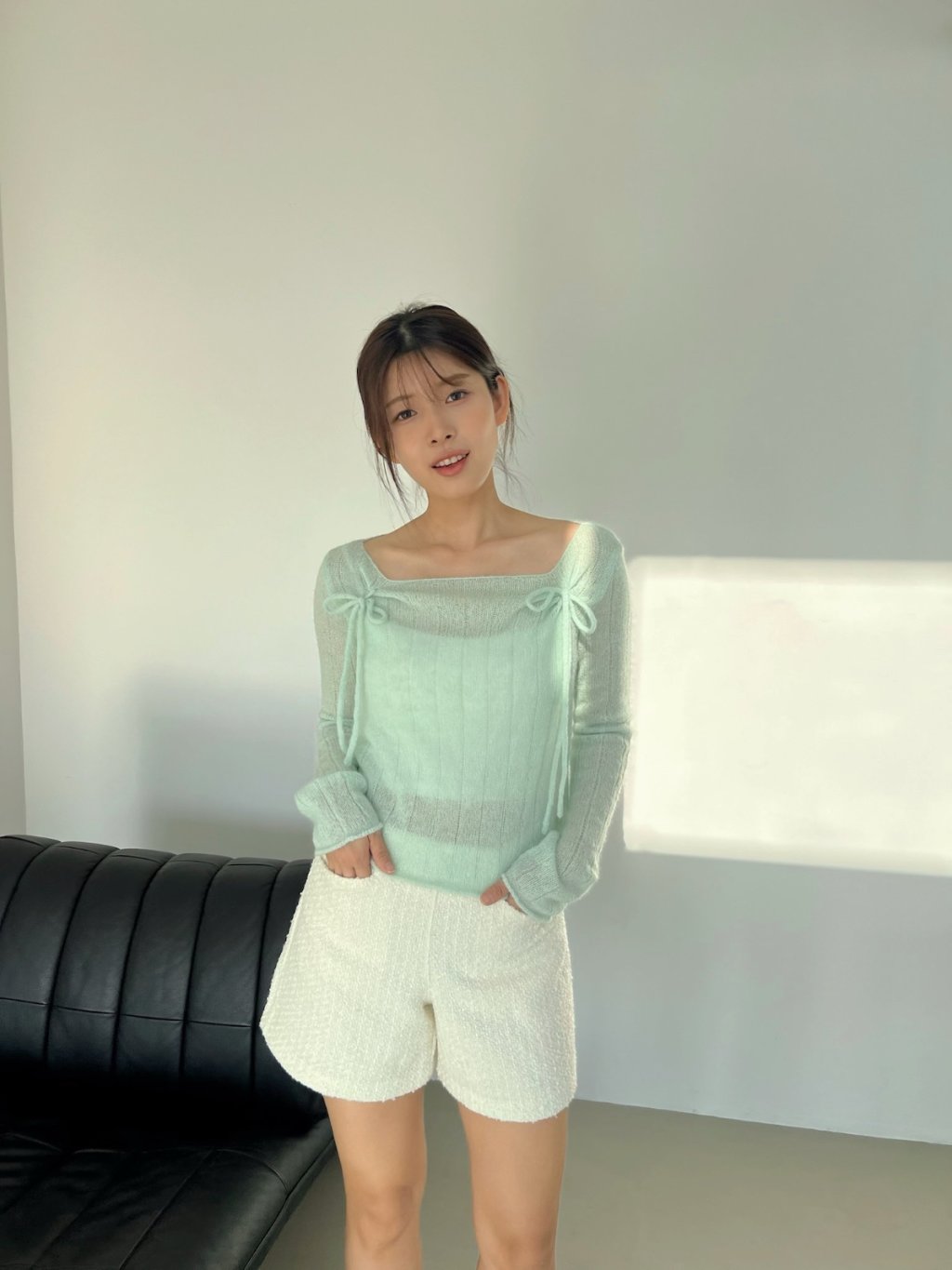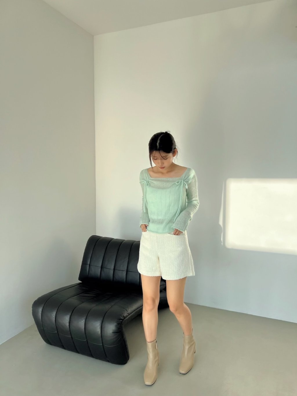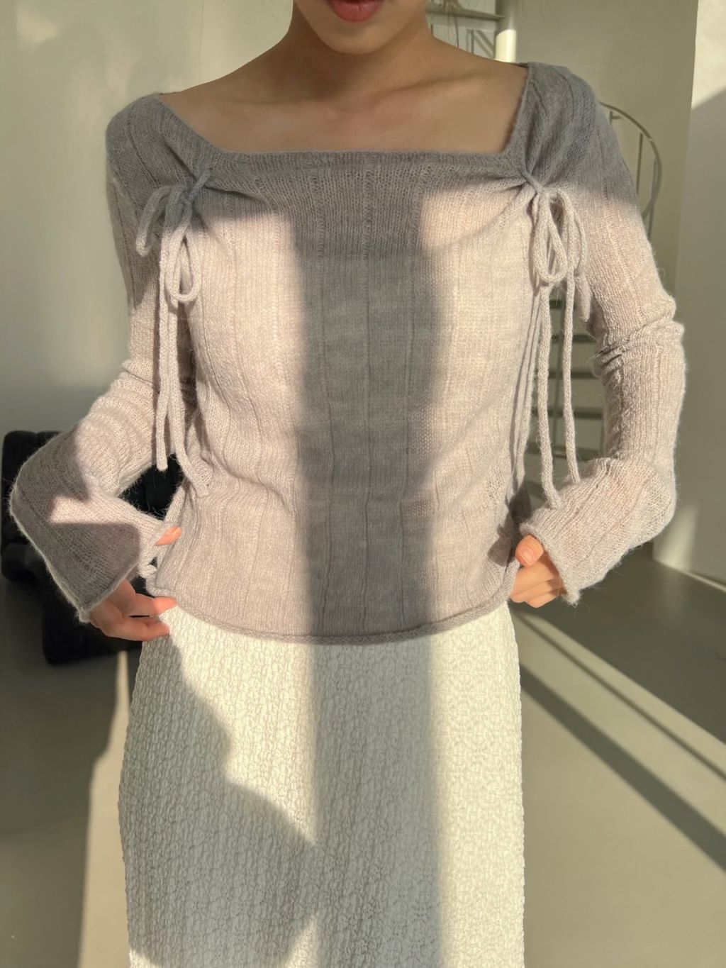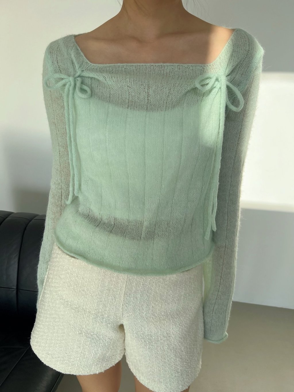 氣質輕柔感蝴蝶結方領針織上衣
