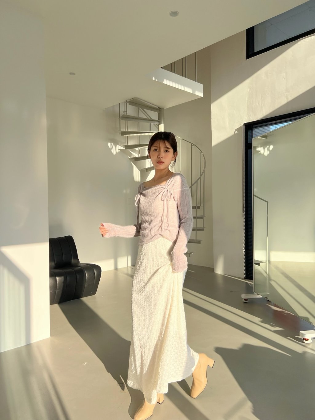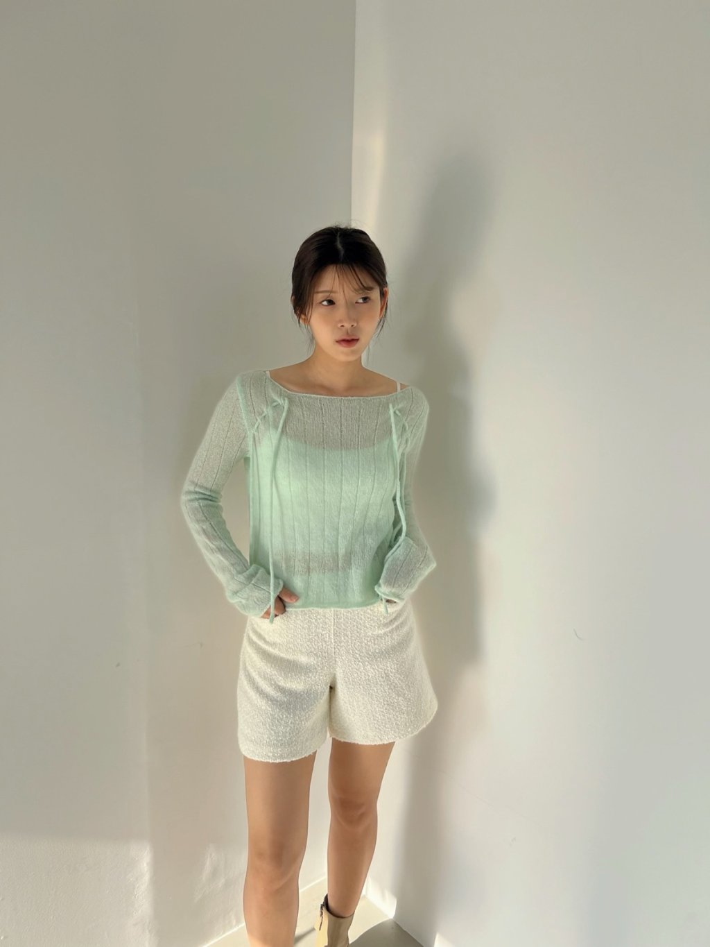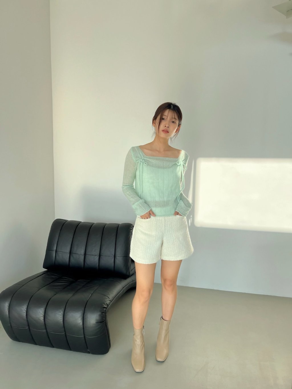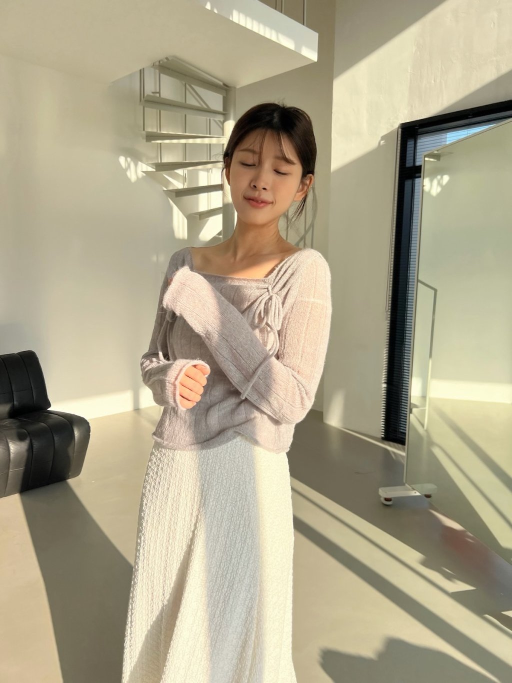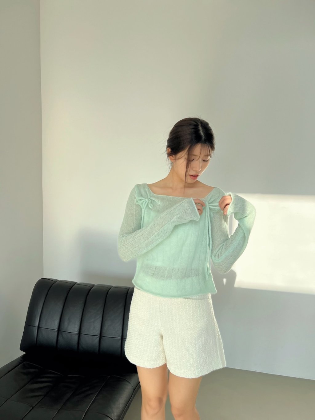氣質輕柔感蝴蝶結方領針織上衣
